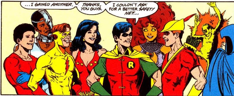 This history is also present within the comics canon, for Dick basically grew up in the superhero community. Where Bruce Wayne traveled the world to be trained in various disciplines from men like Henri Ducard, Dick was raised in a world where Batman was his teacher and father, and heroes like Superman, Hawkman, Wonder Woman, The Flash, and Green Arrow were but a call away. On top of this, Dick was also the leader of the Teen Titans, the first youth superhero team. Growing up in this environment exposed Dick to the best of the best in crimefighting, and allowed him to hone his leadership skills from a young age. This community that Dick fostered allowed him to build a support group beyond Bruce and Alfred, and led him to become one of the most well liked and trusted heroes in the DCU.